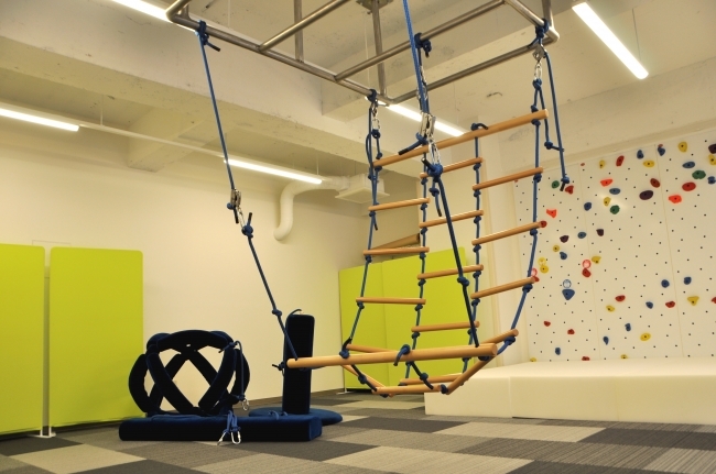 ③基礎感覚(前庭覚、固有感覚、触覚)を刺激する様々なアイテム(トランポリンやホーススイング等) を設置