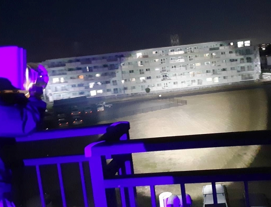 *水銀灯と疑われるほどの明るさが遠くまで届く