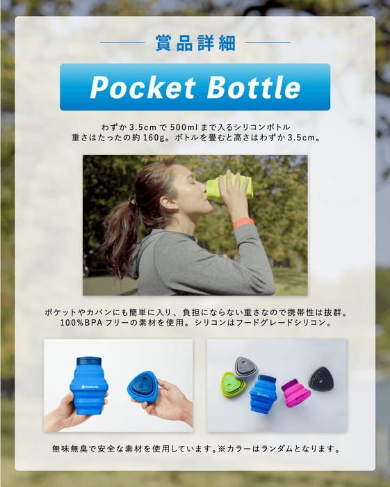年々暑さが厳しくなっており、熱中症を発症する方も増え続けています。2025年6月1日から、労働安全衛生規則改正が施工され、事業者に対して熱中症対策が義務付けられるなど、熱中症対策は社会全体で重要視されています。そこで、「RDX® SPORTS」は猛暑の中トレーニングをする方の熱中症予防を目的に、折りたたみボトル「PocketBottle」が当たるサマーキャンペーンを開催します。「PocketBottle」はわずか3.5cmで500mlまで入るシリコンボトルになっており、あらゆるシーンで使用いただけるアイテムとなっております。