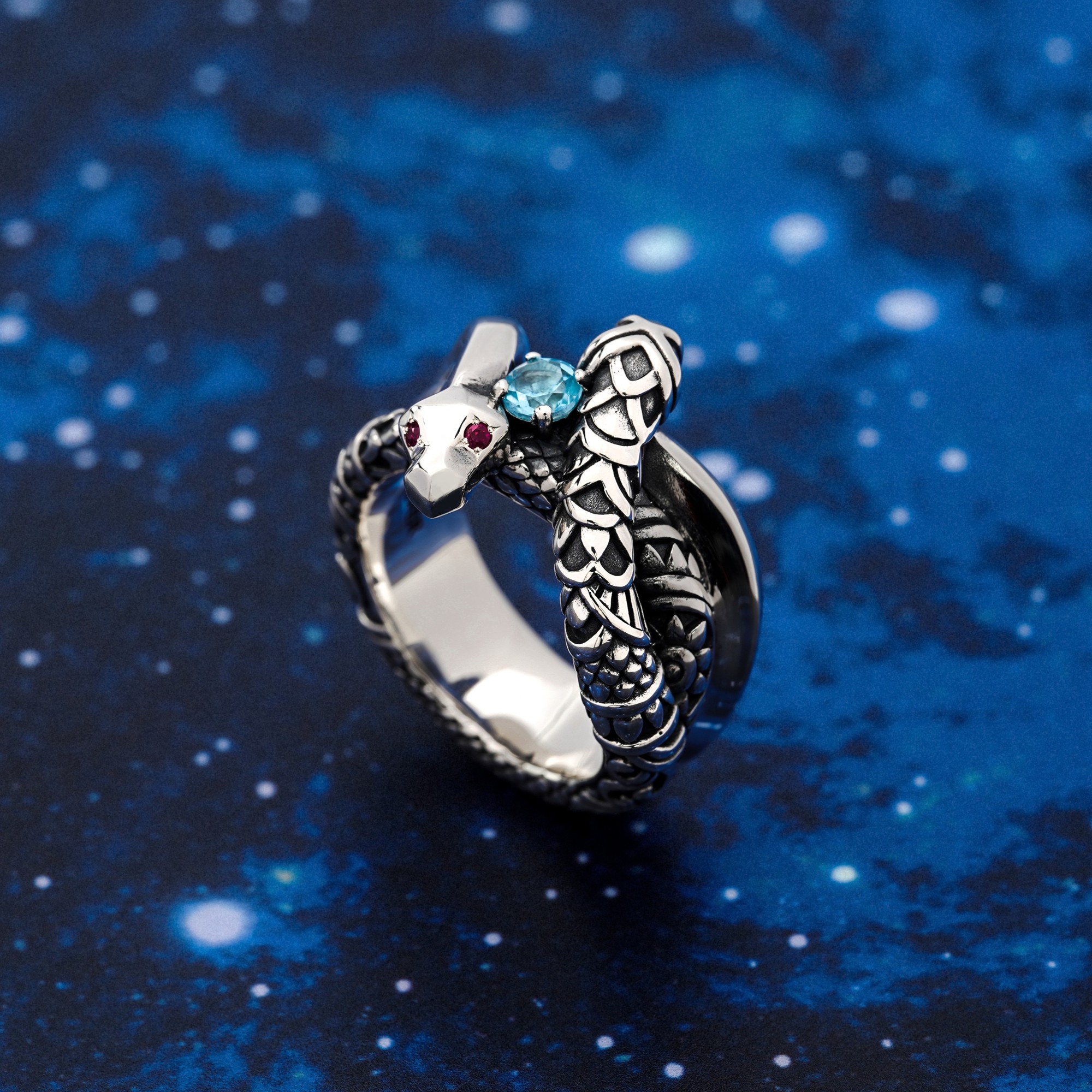 素材:SV925、スイスブルートパーズ(ラウンド4mm)、ルビー(ラウンド1.2mm×2ps)