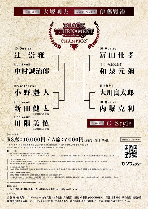 10・Quatre(東京都練馬区、代表:内堀克利)主催、『BLACK TOURNAMENT~second coming~』が2022年11月29日 (火) ~2022年11月30日 (水)に新木場1stRING(東京都江東区新木場1-6-24)にて開催されます。