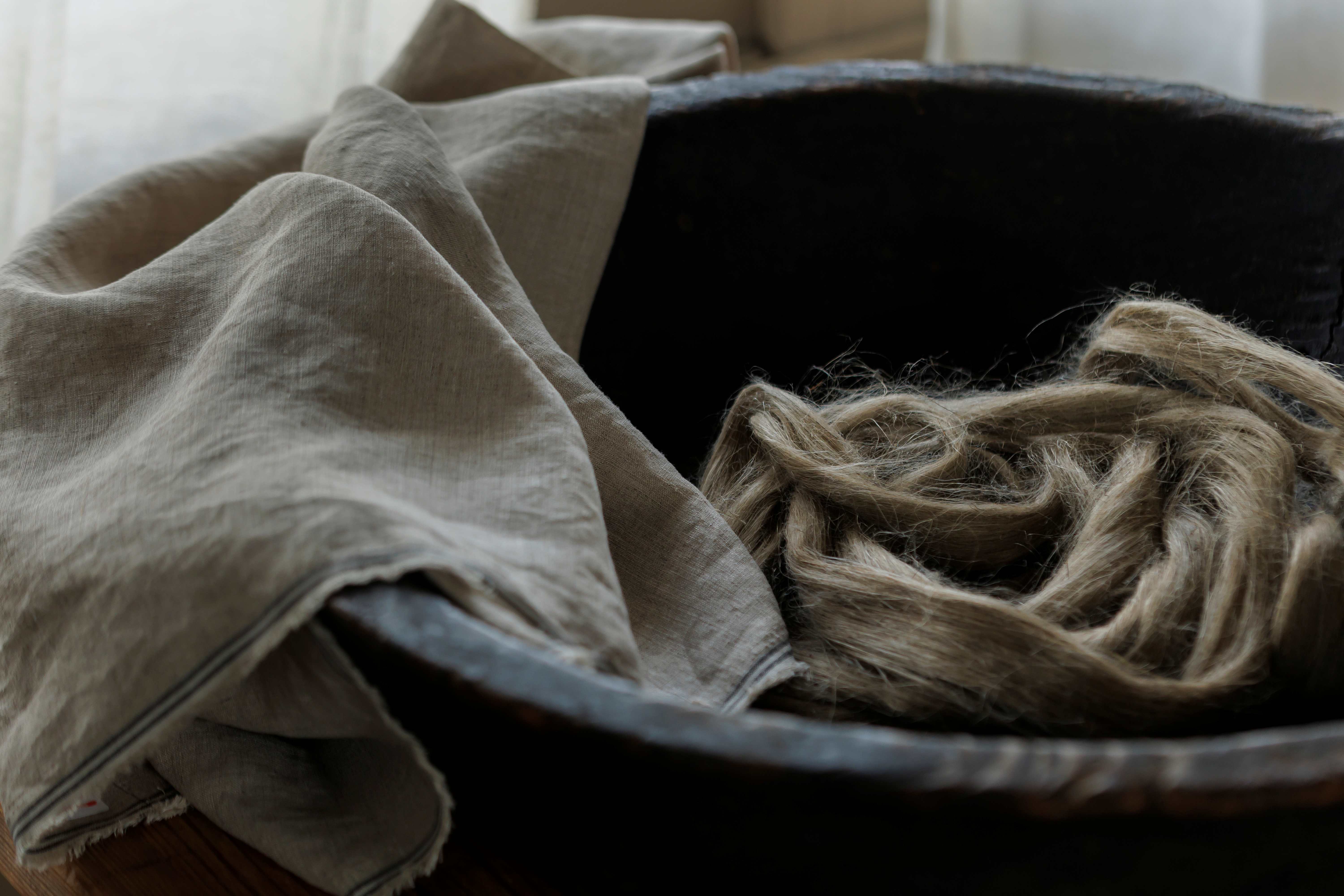 世界有数の産業用ヘンプの産地・中国黒竜江省の肥沃な黒土「ブラックソイル」で育った希少な黒大麻。極寒と湿潤を繰り返す現地の特殊な環境が、有機物とミネラルを豊富に含む黒い土壌を育み、その養分を吸収した大麻が黒大麻。さらに晒しや染色を施さず、黒大麻本来の生成りの色を生かした糸は、現在ほとんど流通していない極めて貴重な素材です。
