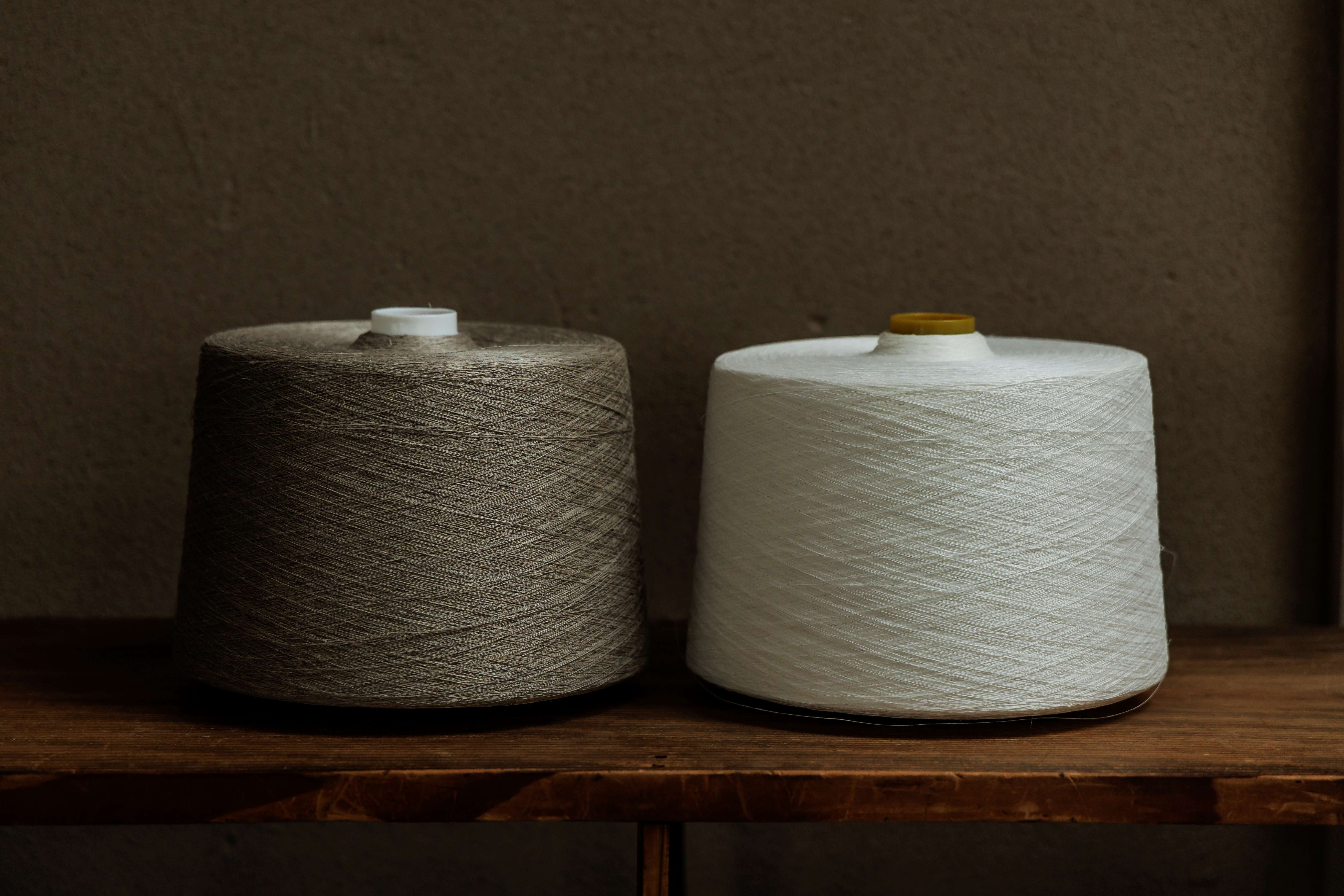 稀少な自然素材の糸を探す中で、麻織物を専門に扱う滋賀麻工業株式会社さんに提案いただき、中国黒竜江省産のデッドストックとなっていた希少な黒大麻の生成り糸に巡り合いました。晒しや染色を施さない黒大麻の生成りは品質の安定が難しく、中国の紡績工場で生産が中止され、現存するのは最後の約3000mのみ。KURASIKUが掲げる「自然素材が持つ本来の美しさを作為なく生かす」ものづくりの思想と強く共鳴し、この生成り糸を譲り受け、数量限定のプロダクトとして開発を決断しました。