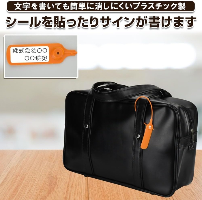 ロックがある側にはシールを貼ったり字を書くことも可能です。社名・商品名・品番などを明記しておくことで、視認性が高まるだけでなく在庫管理の効率アップにも繋がります。本体は軽量かつ柔らかい素材でできているため、革製品や編み物といったデリケートな商品にも気兼ねなくご使用いただけます。鍵もパスワードも不要!タグ1つであなたの防犯意識を変えるすり替え防止タグでトラブルを回避しましょう。
