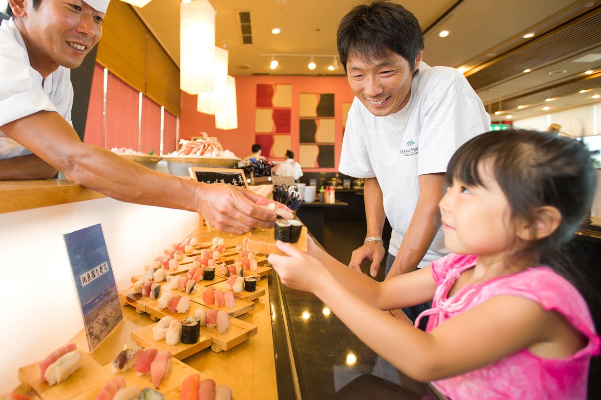 旬の地魚の刺身や、好きな具材をのせて作る「のっけ丼」をはじめ、ライブキッチンでは鉄板焼き、寿司、天ぷら、アジフライなど、出来たての料理をご提供。海鮮メニューを中心に、和・洋・中さまざまな料理が並ぶ、バラエティ豊かなバイキングです。ケーキやアイスなど約20種類のスイーツに加え、キッズメニューや離乳食も充実。ソフトドリンク15種類もすべて飲み放題で、お子様から大人まで幅広くお楽しみいただけます。