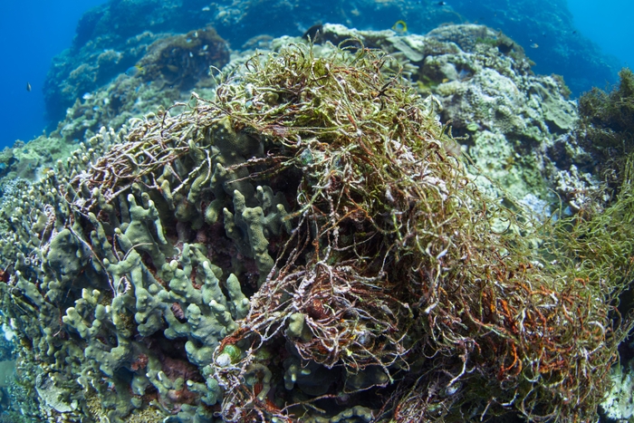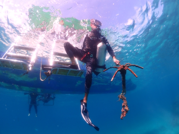 ただし、海中ゴミは増え続ける一方で、海中ゴミの存在がサンゴの成長を阻害しています。海中ゴミは、漁具、魚網、ロープ、ペットボトル、金属などでサンゴに絡み付いて堆積しています。