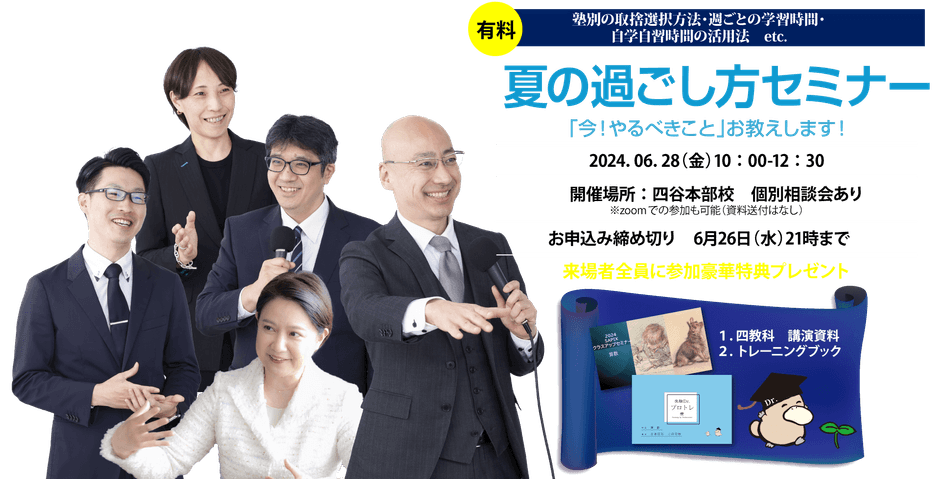 受験の天王山・夏休みの過ごし方を受験Dr.の講師が解説! 6年生保護者対象のセミナーを四谷本部校で6月28日開催