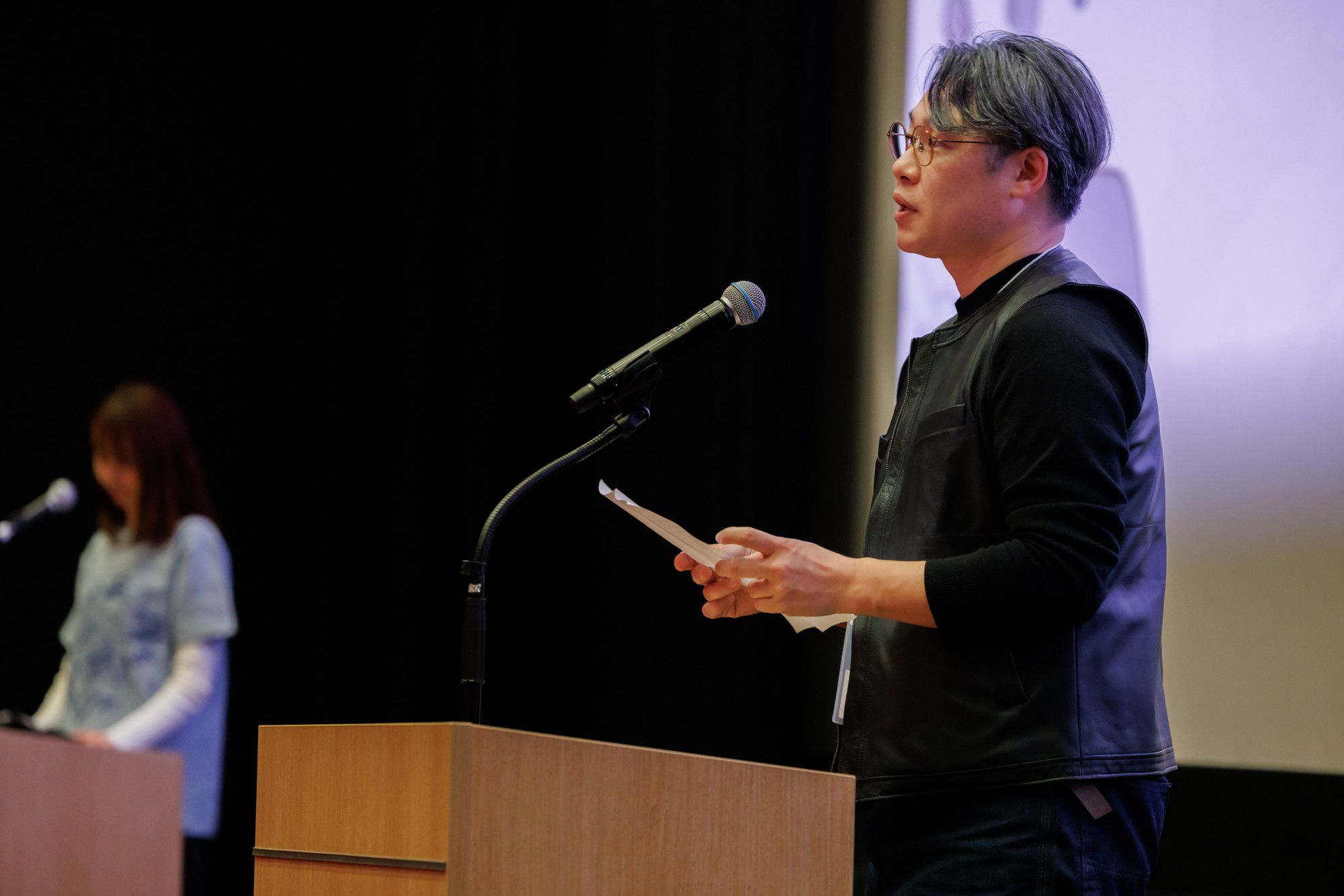 また、国際審査員を代表して、今年3月に第97回アカデミー賞アニメーション賞を受賞したギンツ・ジルバロディス氏が登壇。ギンツ氏は2015年に短編部門入選作家として初めて本映画祭に参加し、今回が3度目の来場となりました。本映画祭に関わることの喜びと共に、「映画祭を通してたくさんの友人が出来た。今年も新しい友人が出来ることを楽しみにしている」と挨拶しました。