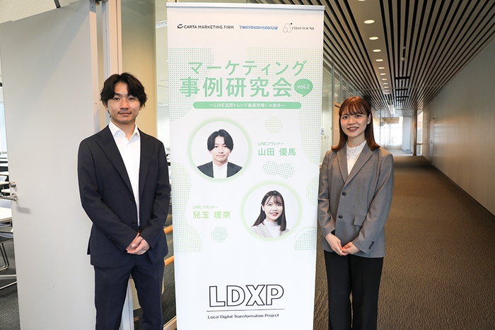 株式会社CARTA HOLDINGSのグループ会社で、マーケティング特化の事業を展開する株式会社CARTA MARKETING FIRM(東京都港区虎ノ門、代表取締役:西園 正志、以下CARTA MARKETING FIRM)は、株式会社ファーストサウンド(東京都中央区銀座、取締役代表:檜山 初音)、杜陵高速印刷株式会社(岩手県盛岡市、代表取締役:西野 正寿)と共同で推進するLDXプロジェクト*の一環として、LINE活用術を学べるプレミアムイベント「マーケティング事例研究会Vol.2~LINE活用トレンド徹底攻略 in 岩手〜」を、「アイーナ・いわて県民情報交流センター」にて開催しました。