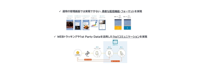 最後に、CARTA COMMUNICATIONS独自のLINE APIツール「KNOTBOX(ノットボックス)」についても説明。KNOTBOXは、バラバラになっている各種データをOne IDに結びつけ、1to1コミュニケーションを実現するものであり、ユーザー情報の取得・分析・可視化することが可能だと述べました。