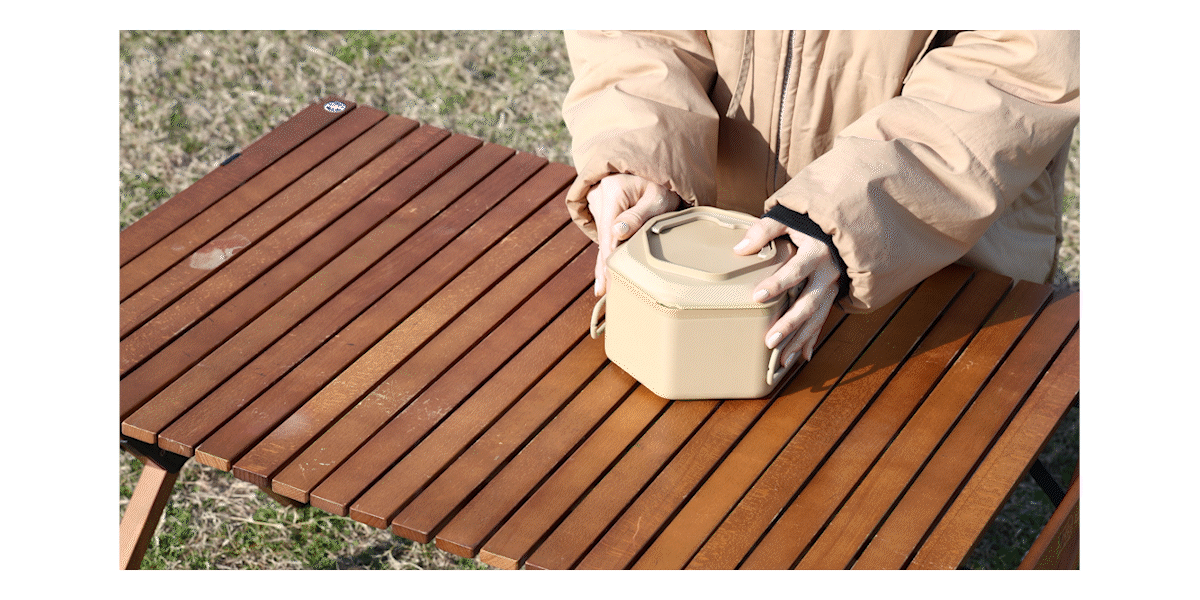 調理器具の多くは白や黒のシンプルなカラー展開が主流ですが、PowerArQ DuoPotは自然に溶け込むアースカラーを採用。ポータブル電源"PowerArQ"やポータブル冷蔵庫"ICEBERG"と並べても統一感があり、サイトに映えるビジュアルに仕上がっています。