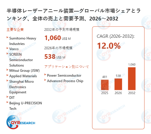 本記事は、QY Research発行のレポート「半導体レーザーアニール装置―グローバル市場シェアとランキング、全体の売上と需要予測、2026~2032」に基づき、市場動向および競合分析の概要を解説します。