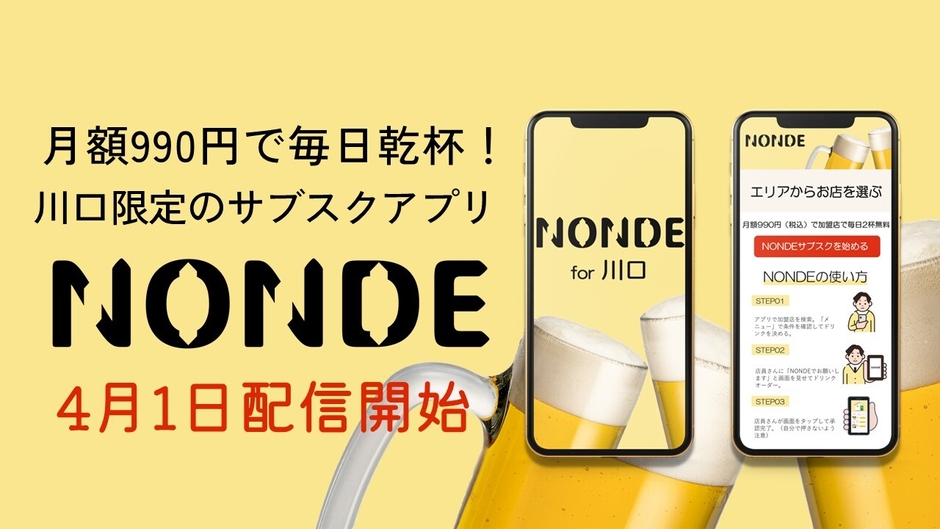 月額990円~1,000円で毎日乾杯!川口市の飲食シーンを変える サブスクリプションサービス「NONDE」の提供を4月1日開始!