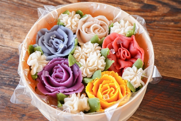 そしてこの鮮やかなお花達は白あんベースで作られているのですが、なんと着色料は不使用!全て食材の色なんだとか。