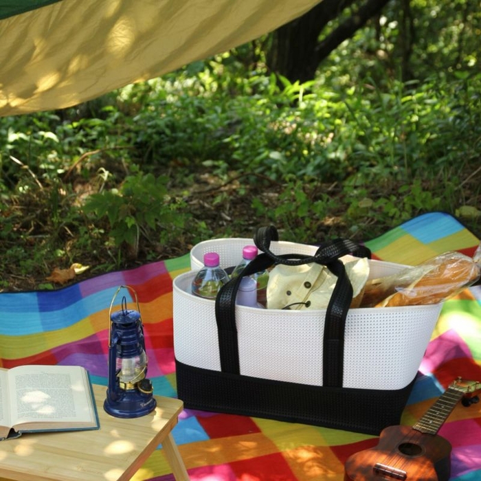 EVA素材で水や汚れに強くアウトドアやレジャーで大活躍の大容量コンテナバッグです。ハンドル部分は肩にかけられる長さで、口はワンタッチベルトで留められます。たっぷり入るので毎日のお買物にもオススメです。