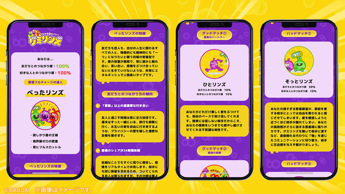 ※「つながリンズ診断」ページ: https://www.bandai.co.jp/candy/gummylins/shindan/