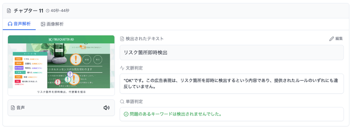 ついに【トラスクエタ ムービー】 動画広告の表現チェックが可能に。 セリフとテキストの自動検出、AIが文脈判定と解析を実現。