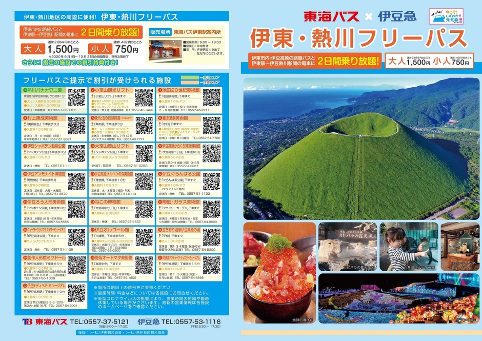 参考:東海バス「伊東観光フリーパス」大人 1,500円、有効期間:1日