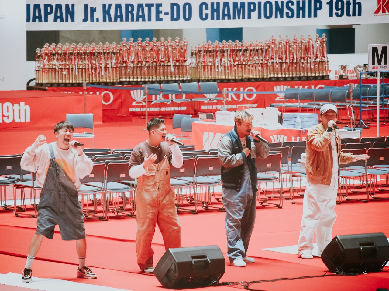 2028年までに大阪城ホールでの単独公演を目指すボーカルグループ・THE FRANK VOX(フランクボックス)が11/23に開催された「第19回JKJO全日本ジュニア空手道選手権大会」及び「第4回全日本学生フルコンタクト空手道選手権大会」のテーマソングとなっている「闘う君への応援歌」を約7,800人の前で歌唱。