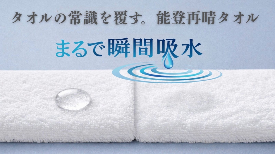 今回、能登再晴タオルの機能性は活かし、高機能で高吸水な「瞬間吸水タオル」が新登場。