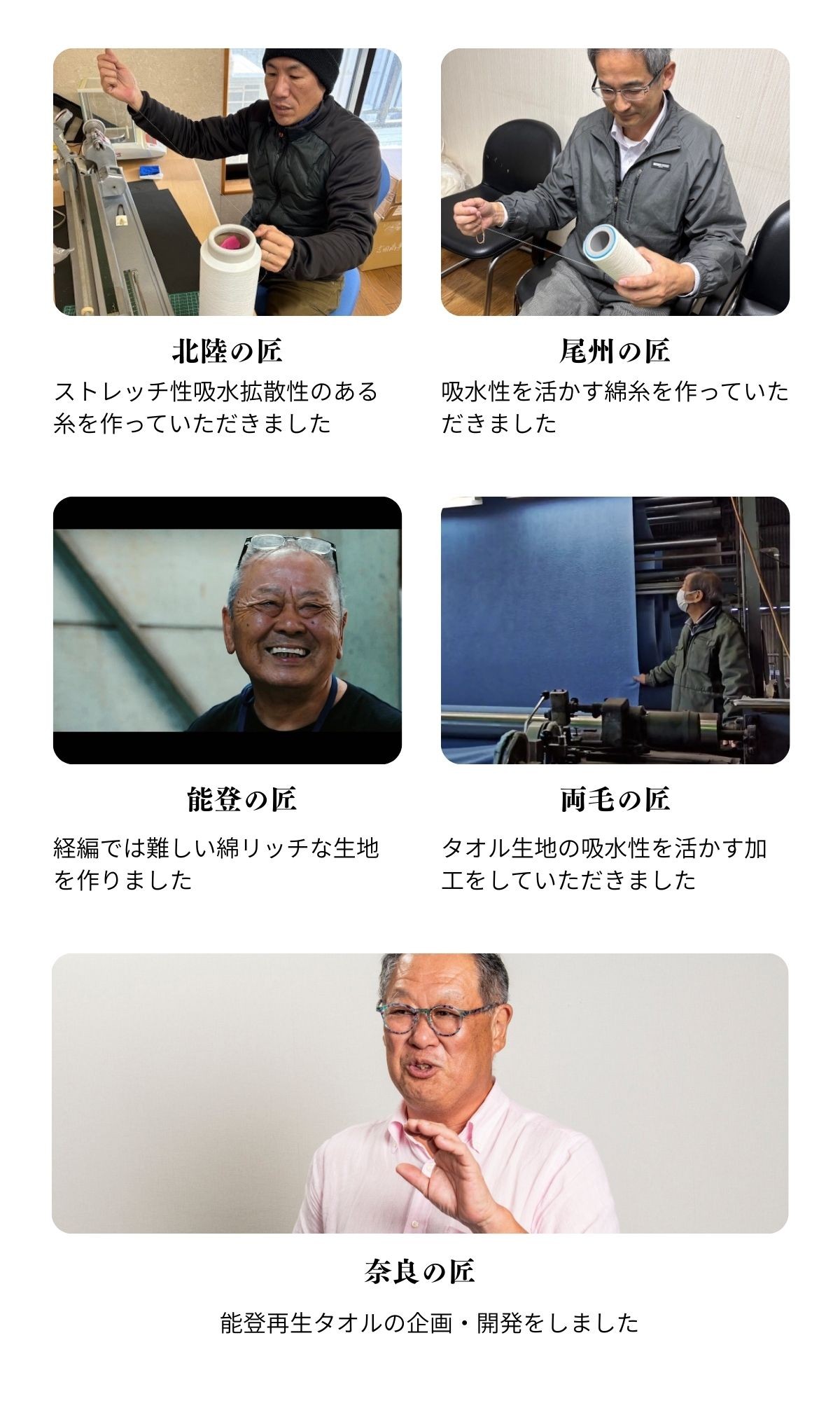 今回の「能登再晴タオル」は、糸の匠・編みの匠・染色の匠とコラボして作り上げた商品です。