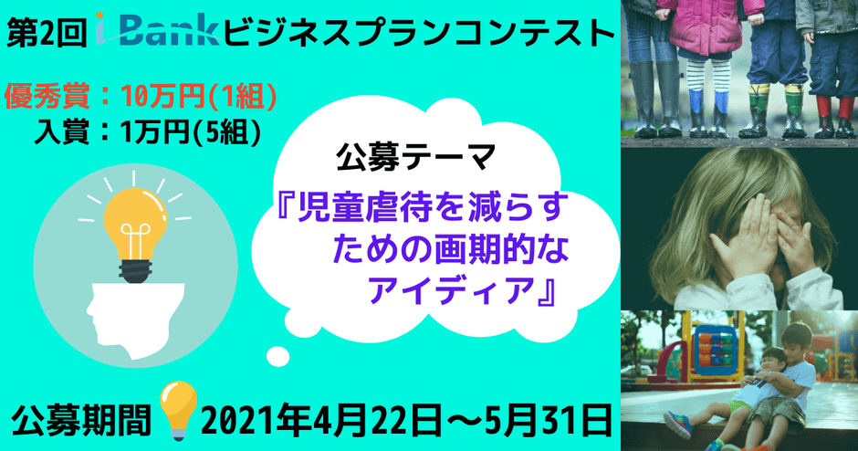 第2回 i-Bankビジネスプランコンテスト「子供の虐待を減らすための画期的なアイディア」募集!