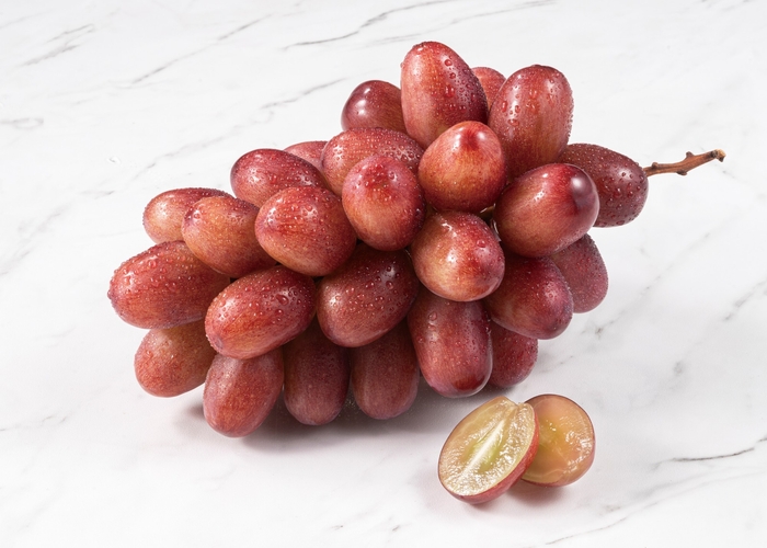 長野県で誕生したばかりの新品種「クイーンルージュ」は、鮮やかなルージュ色の果皮が目を惹く、希少性の高い高級ぶどうです。酸味がほとんどなく、糖度が高いことで知られ、口に含むと上品で華やかな香りがふわりと広がります。さらに、張りのある薄皮はパリッとはじけ、みずみずしい果汁とともに特別な食感をお楽しみいただけます。