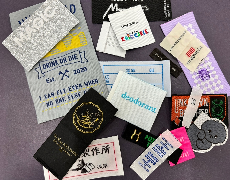 模倣品や偽造品からブランドを守る偽造防止糸「SHIRUSHI」への問い合わせ数が、ここ3年程で5倍に急増しています。独自の技術で開発された特殊な偽造防止糸「SHIRUSHI」(特許第6382113号)は、幅0.15~0.75ミリという髪の毛より細い糸にブランド名をプリントすることができます。衣類やバッグ、小物などに縫い付けられているタグを織ネームと言いますが、その織ネームの偽造防止糸「SHIRUSHI」へブランド名をプリントした糸を織り込みます。