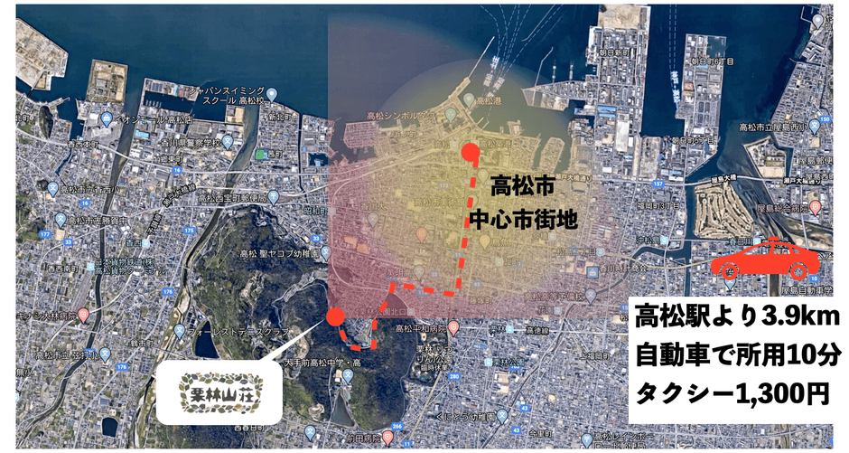 アクセス : ことでん「栗林公園北口」駅より、自動車で3分、