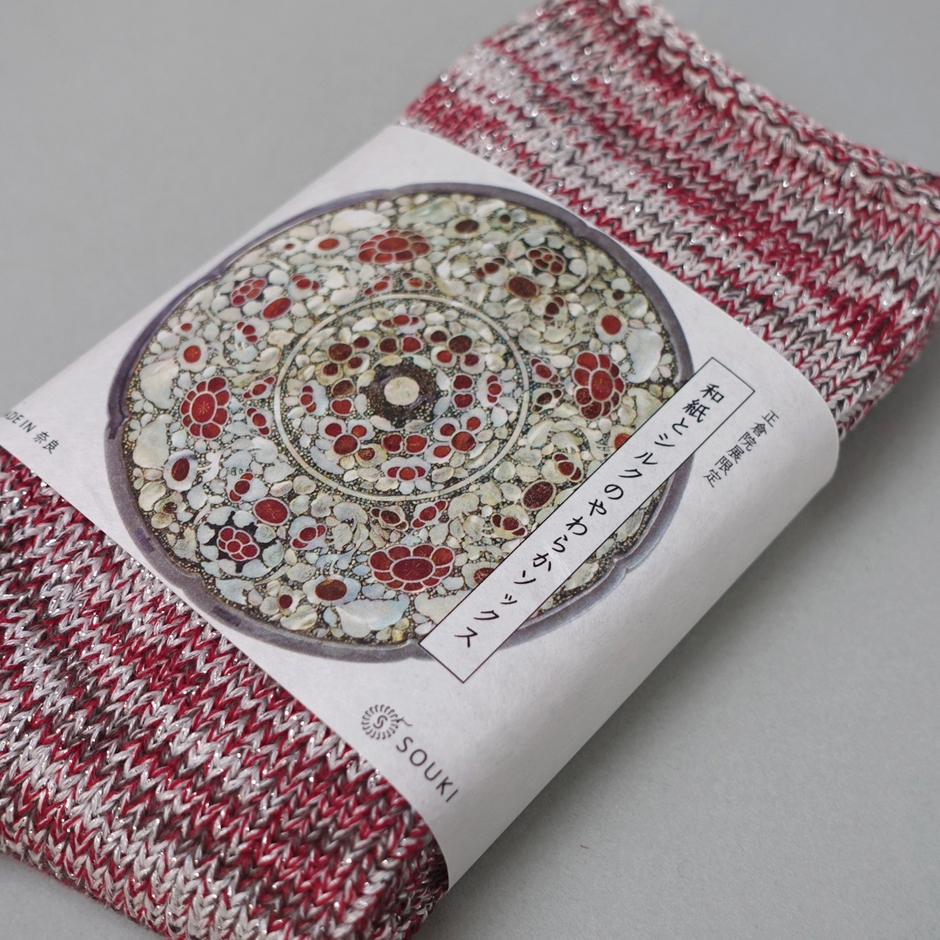 株式会社 創喜(所在地:奈良県北葛城郡広陵町、代表取締役:出張 耕平)は、2023年10月28日(土)に「SOUKI ORIGINAL-和紙とシルクのやわらかソックス-」の「第75回正倉院展限定カラー」を発売いたします。正倉院宝物である「平螺鈿背八角鏡(へいらでんはいのはっかくきょう)」をイメージした、螺鈿や琥珀の赤のきらめきを感じられるスペシャルな靴下です。