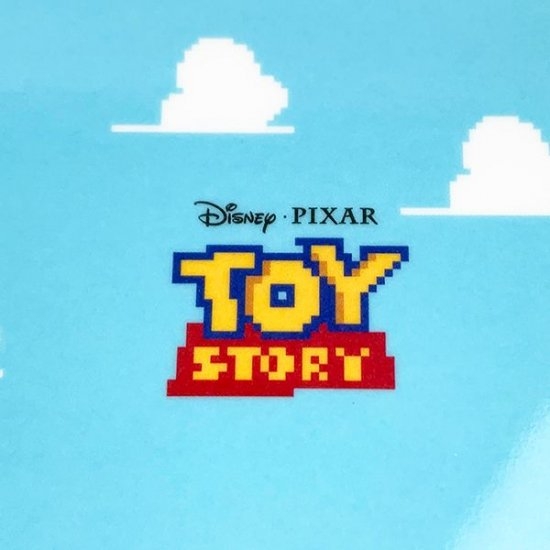 ピクサーお馴染みのピクサーボールやウッディの保安官バッジだってゲーム風。トイストーリーのロゴだってゲーム風です。このドット絵っぽいデザインが可愛いですよね~!
