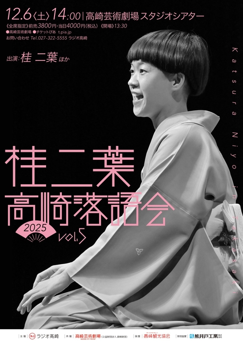 2025年12月6日(土)14:00から、高崎芸術劇場スタジオシアターにて「桂二葉 高崎落語会 2025 vol.5」を開催いたします。