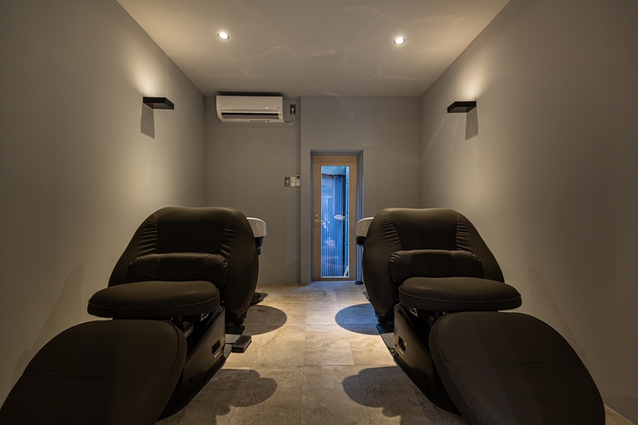 緑をくぐった先にあるシャンプー台は、フルフラット仕様で居心地よく過ごせると特に評判です。