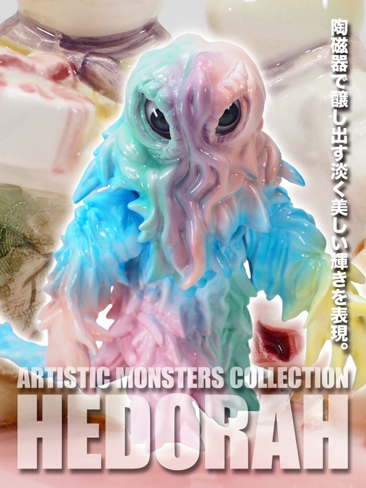 ソフビ製ながら、陶磁器かと見紛うかの様な特別仕様の新たな表現に挑戦した、POP ARTなヘドラをとくとご覧あれ!