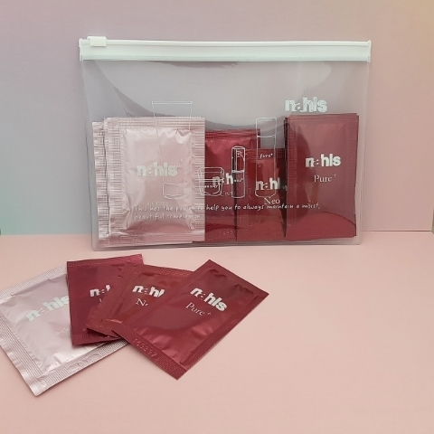 「ナールス トラベルセット」は、クレンジングジェル「ナールスエークレンズ」、化粧水「ナールスピュア」、美容液「ナールスネオ」、保湿クリーム「ナールスユニバ」の4アイテムをコンパクトでオシャレな携帯用ポーチに4包ずつセットにしたもの。