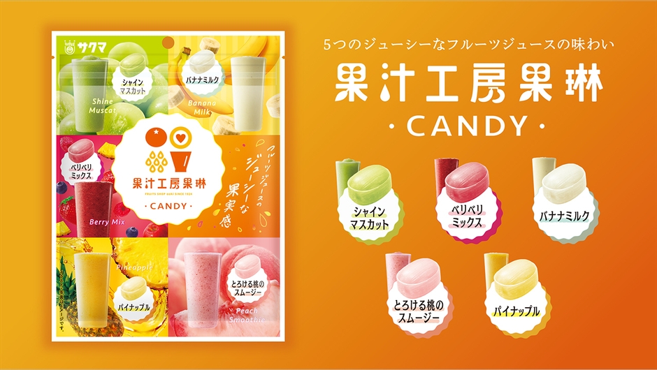 【果汁工房果琳×サクマ製菓】 人気のフルーツジュースをいつでもキャンディで楽しめる! ジューシーな果実感を追求したキャンディを3月6日新発売