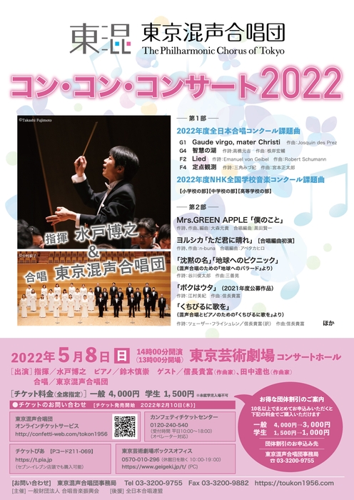 最新J-POPや長く愛される合唱曲まで 東京混声合唱団『コン・コン・コンサート2022』開催決定 カンフェティでチケット発売