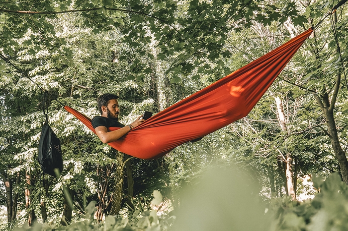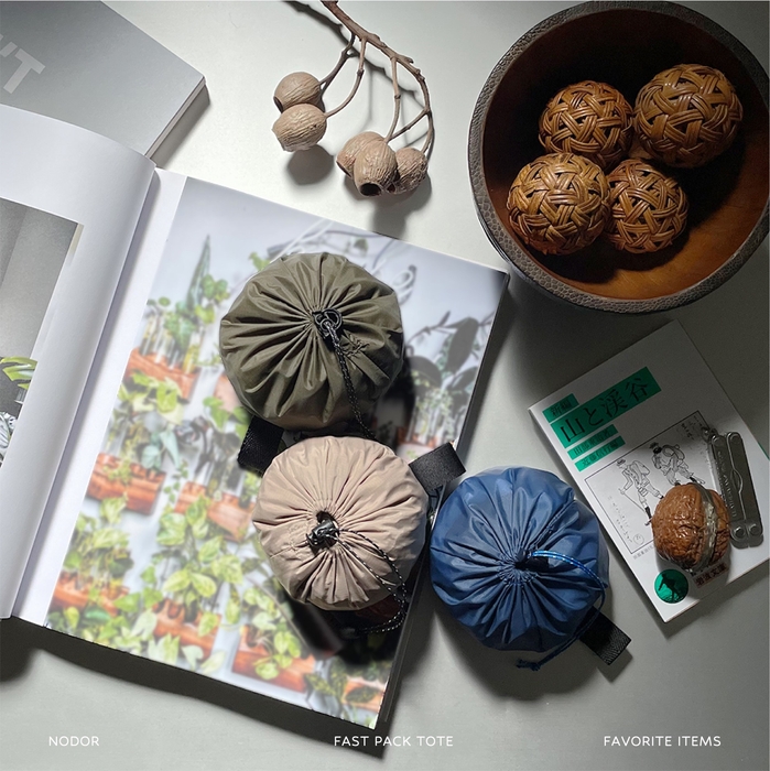〈FAST PACK TOTE〉は、エコバッグとトートバッグの特徴を併せ持つ「進化系パッカブルトートバッグ」です。ハンモック構造をヒントに、そしてアウトドアの素材や機能性も盛り込み企画開発しました。