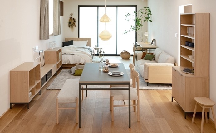 ブランド名の「Les Formes」は、英語とフランス語を合わせた「私のための形」「私のためのデザイン」を意味する言葉で、自分だけのプレミアムなインテリアを実現できることから生まれたネーミングです。様々なマンションの間取りをリサーチして得られた独自のサイズ感とモジュールにより、多様なライフスタイルや住空間に合わせてのコーディネートが可能です。テーブル(デスク)とベッド・ソファを組合せるなど、海外のデザインホテルのような、ワンルームを広々と使うレイアウトができることも大きな魅力の一つです。