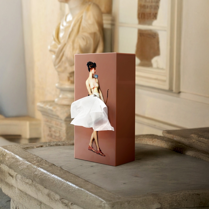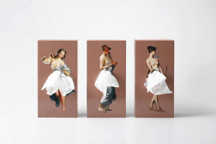 ”そんな想いを込めて生まれたこのシリーズは、ギリシャ・ローマ神話に登場する女神たちをモチーフにした置き型ティッシュケース。ティッシュがふんわりと広がる姿は、まるで女神のスカートのよう。使うたびに、まるで神話のワンシーンに触れるような体験が広がります。