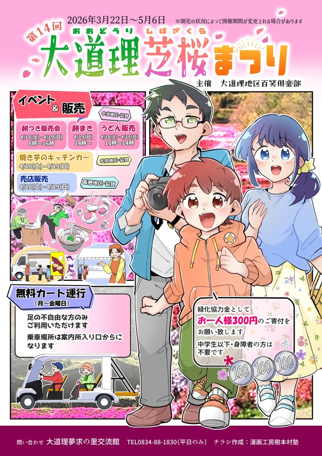 ※芝桜まつり期間中は、緑化協力金としてお1人様300円のご寄附をお願いします