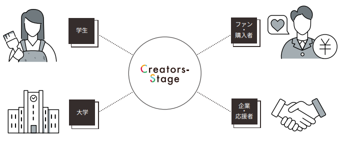 Creators-Stage®は、芸術を学ぶ学生・生徒が安心・安全に作品を発信できる場として立ち上げられたWebサービスです。このたび、学生・生徒自身のPR活動や将来のキャリア支援に役立ててもらうため、オンライン上で作品を販売できる機能と、ポートフォリオを作成できる機能を新たに搭載しました。
