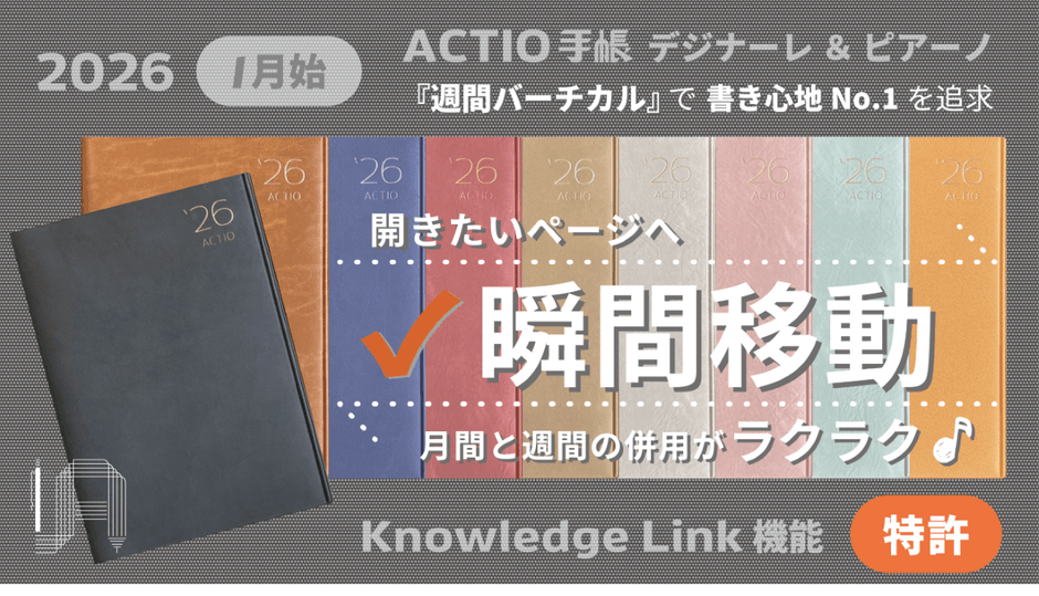 開きたいページへ瞬間移動! 書き心地No.1を追求する週間バーチカル型 「2026 ACTIO手帳 デジナーレ&ピアーノ」を同時リリース