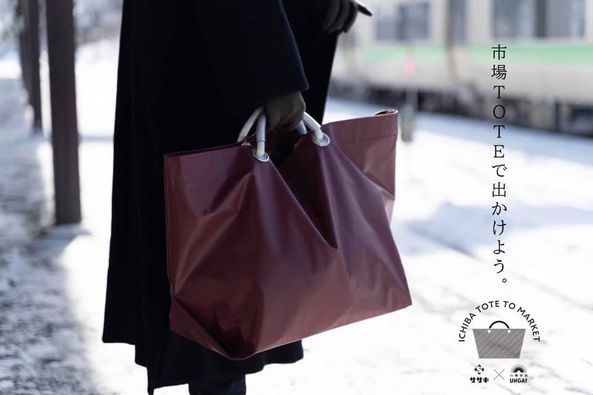 市場TOTEは、創業75年のテント工場「株式会社ササキ」の長年培った縫製技術と小樽百貨UNGA↑の市場への想いが一つになり誕生しました。テントなどの屋外施工に使う丈夫なターポリン生地なので、様々なシーズンで気兼ねなくお使いいただけます。