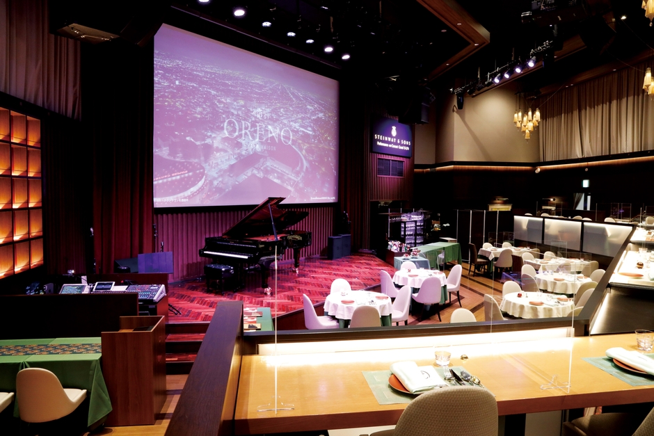 Grand Maison ORENOは、俺のフレンチをはじめとする、俺のレストラングループのトップブランドとして位置づけ、レストランサービスとエンターテインメントを同時に楽しめる極上の体験価値(Eat×Entertainment=イーターテイメント)の提供を目指します。内装に5億円を投資し、300インチのスクリーンを備えたステージには、「スタインウェイD-274」フルコンサートピアノを配置し、天高7mの開放的で居心地の良い店内空間で、通常レストランでは体験できない上質な音楽を、おいしいお食事とともにご堪能いただけます。