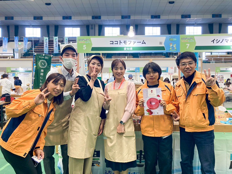 交流会には、鈴木憲和農林水産大臣、木原稔内閣官房長官、上野賢一郎厚生労働大臣らが出席されました。ココトモファームは、自社で栽培した米を活用したバウムクーヘンなどの米粉スイーツを紹介し、試食を通じて活動の報告を行いました。