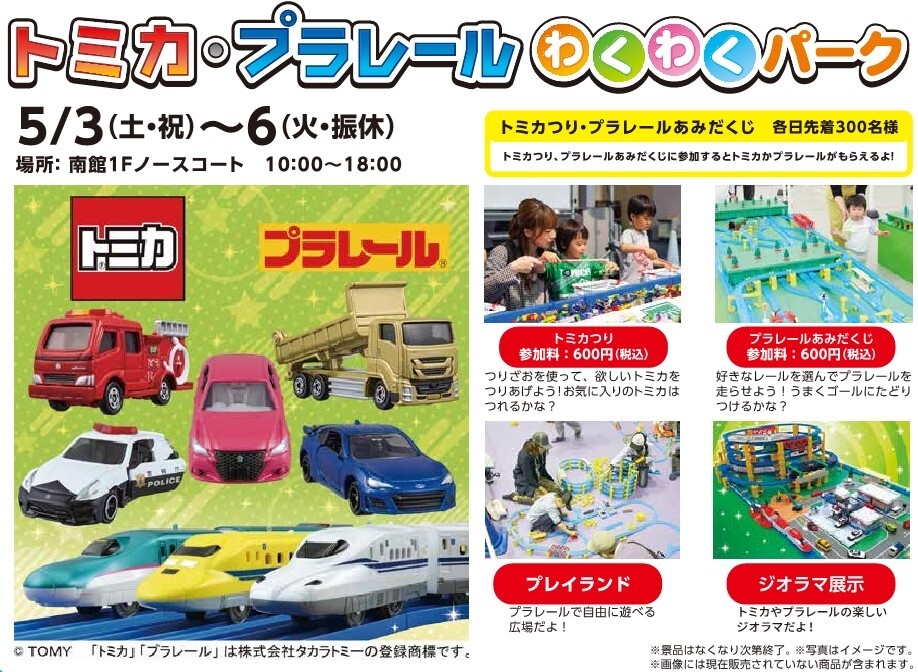 仙台市泉区「泉パークタウン タピオ」 GW特別企画『トミカ・プラレールわくわくパーク』開催!