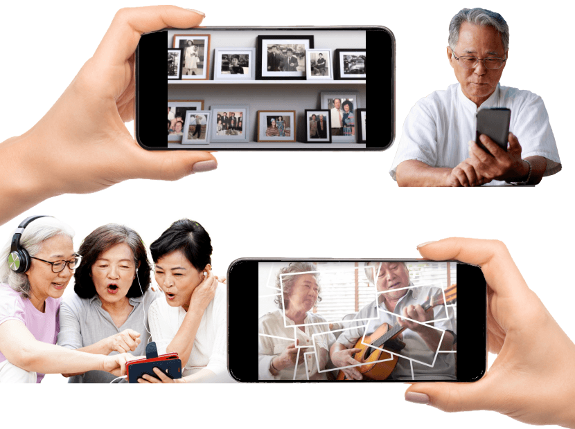シニア(60~79歳)にとって想い出の写真や動画は、自身が歩んできた人生の軌跡。(1)子や孫に自分が生きた証を残したい、(2)これまで支えてくれた病室の妻に感謝を届けたい、(3)今は亡き先代が歩んだ道のりを後進に伝えたい。人生の終盤に差しかかったシニアはそんな想いを抱きながらも、時代の生き証人である写真たちをアルバムの中に眠らせたまま、この世を旅立ってゆきました。しかしながら、2020年代に入り、シニアの9割がモバイル端末を所有し、その中の8割がスマホをメインに利用している現状が浮き彫りになりました。シニアは新聞でなくスマホを片手に出かけるようになり、VHS再生機やテレビ画面がなくても手軽にアルバム動画を鑑賞できるインフラが整ったのです。