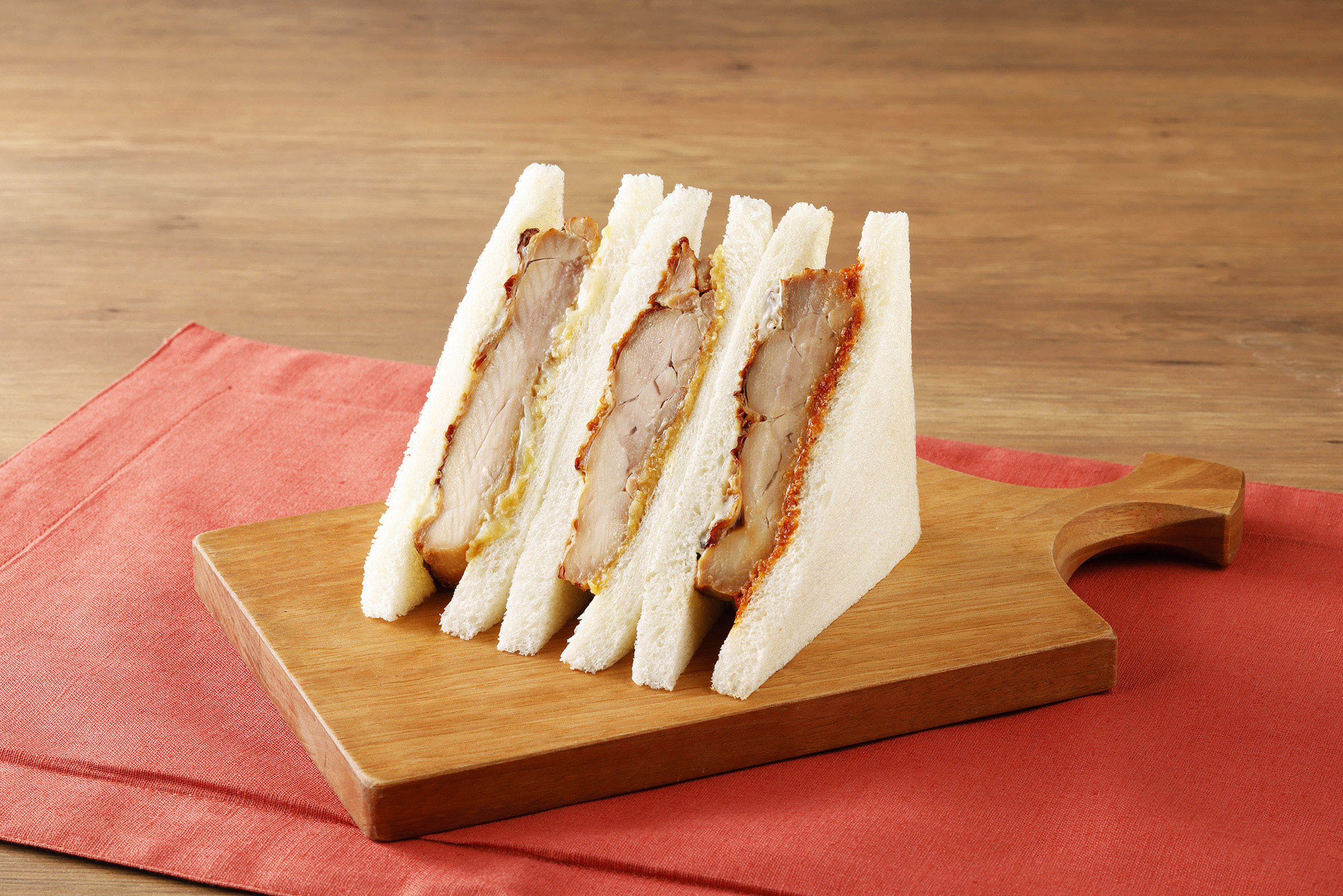 味噌、にんにく味噌、辛味噌の3種の味付けのグリルチキンを具材にしたサンドイッチです。味噌は、明治12年創業の秋田県を代表する老舗味噌メーカー「小玉醸造」が手掛ける秋田味噌を使用。日本が誇る醸造文化から生まれた味噌の多彩な味の広がりをお楽しみください。