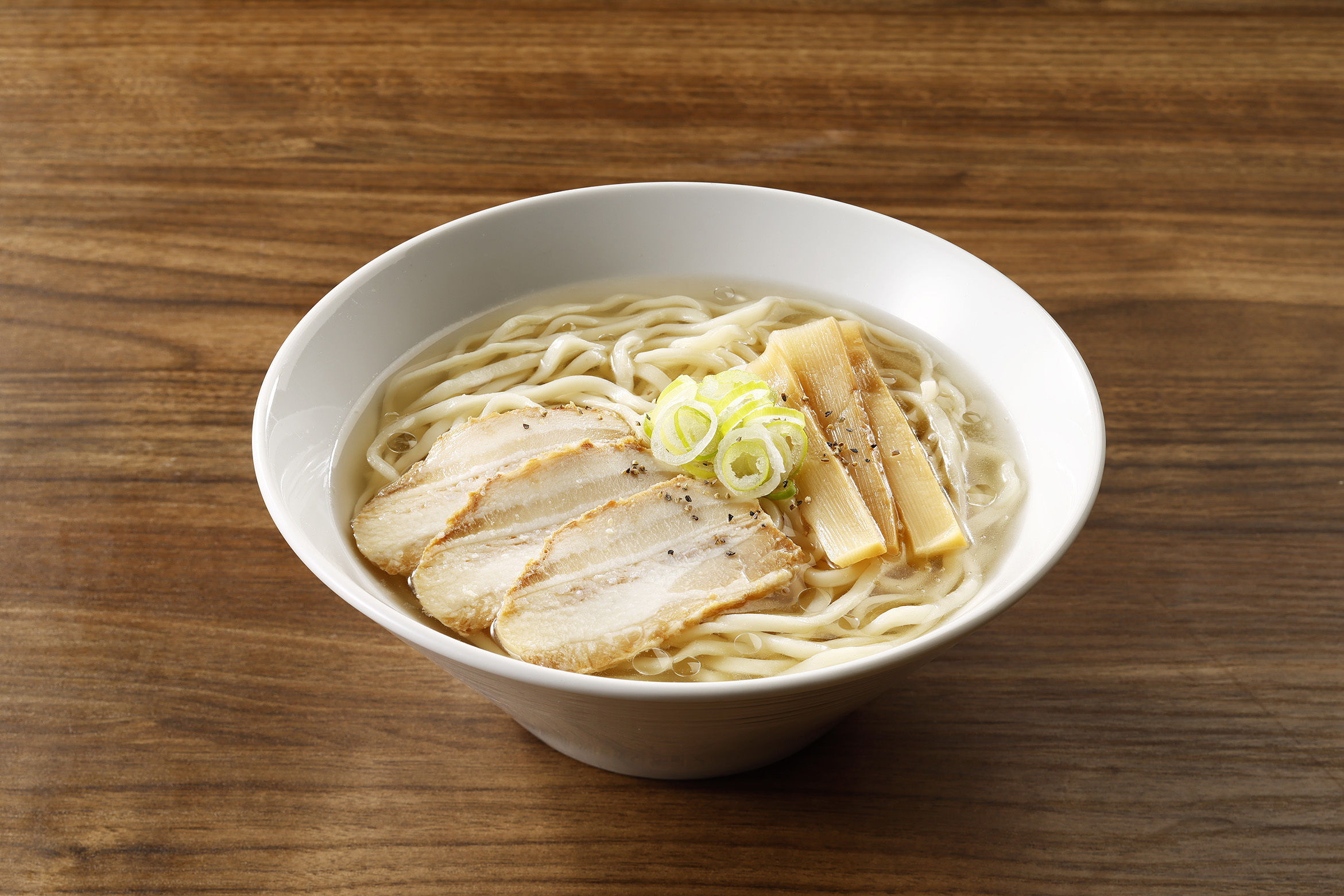 会津若松・喜多方の人気店「会津らぁ麺うえんで」監修の塩ラーメンです。昆布と煮干しの香り広がる塩らぁ麺です。チャーシュー・メンマ・ねぎをトッピングしました。動物と魚介の旨味がつまった塩スープとモチモチとした麺を堪能してください。